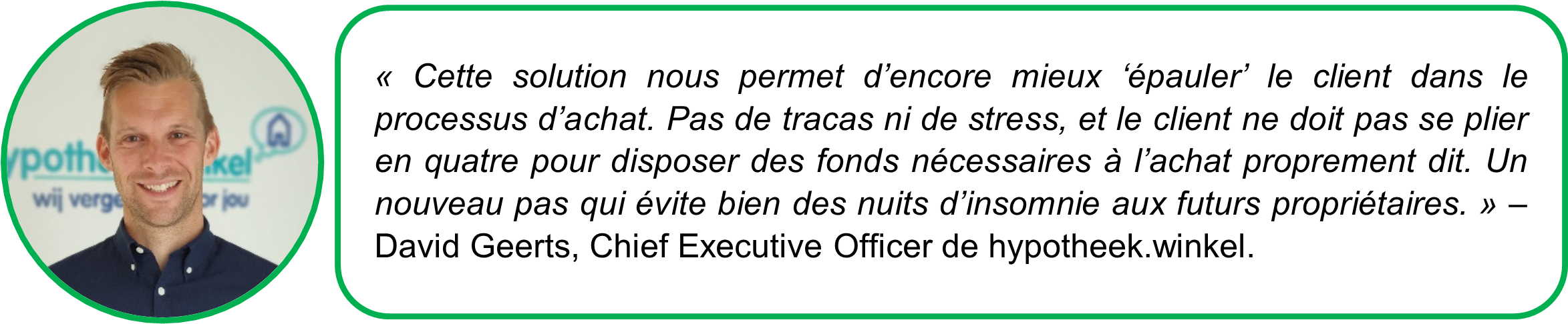 Si un acheteur ne peut pas ou ne veut pas consacrer ses fonds propres au dépôt de garantie, il peut opter pour la Garantie achat immobilier. Dans ce cas, un courtier de hypotheek.winkel demande la Garantie achat immobilier et fait ajouter une clause au compromis pour que ce choix soit clair pour le notaire. Le paiement est effectué chez le notaire lors de la passation de l’acte.