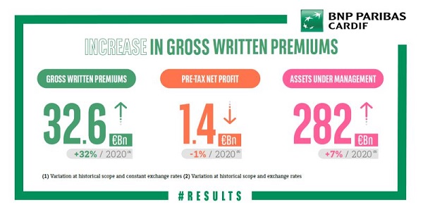BNP PARIBAS CARDIF MELDT STIJGING IN BRUTO GEBOEKTE PREMIES 2021